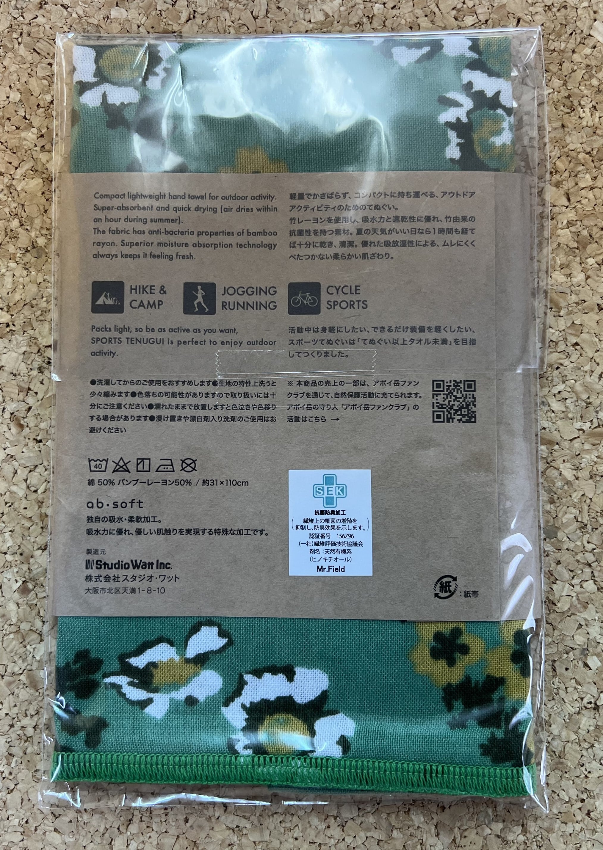 アウトドアアクティビティにおすすめのてぬぐいです。